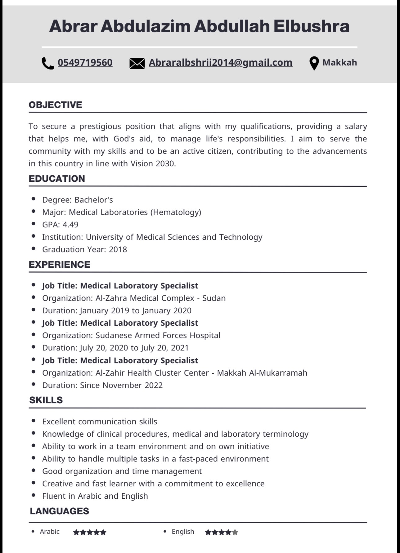 [ التخصص : أمراض دم ، الكلية : مختبرات طبية ]
